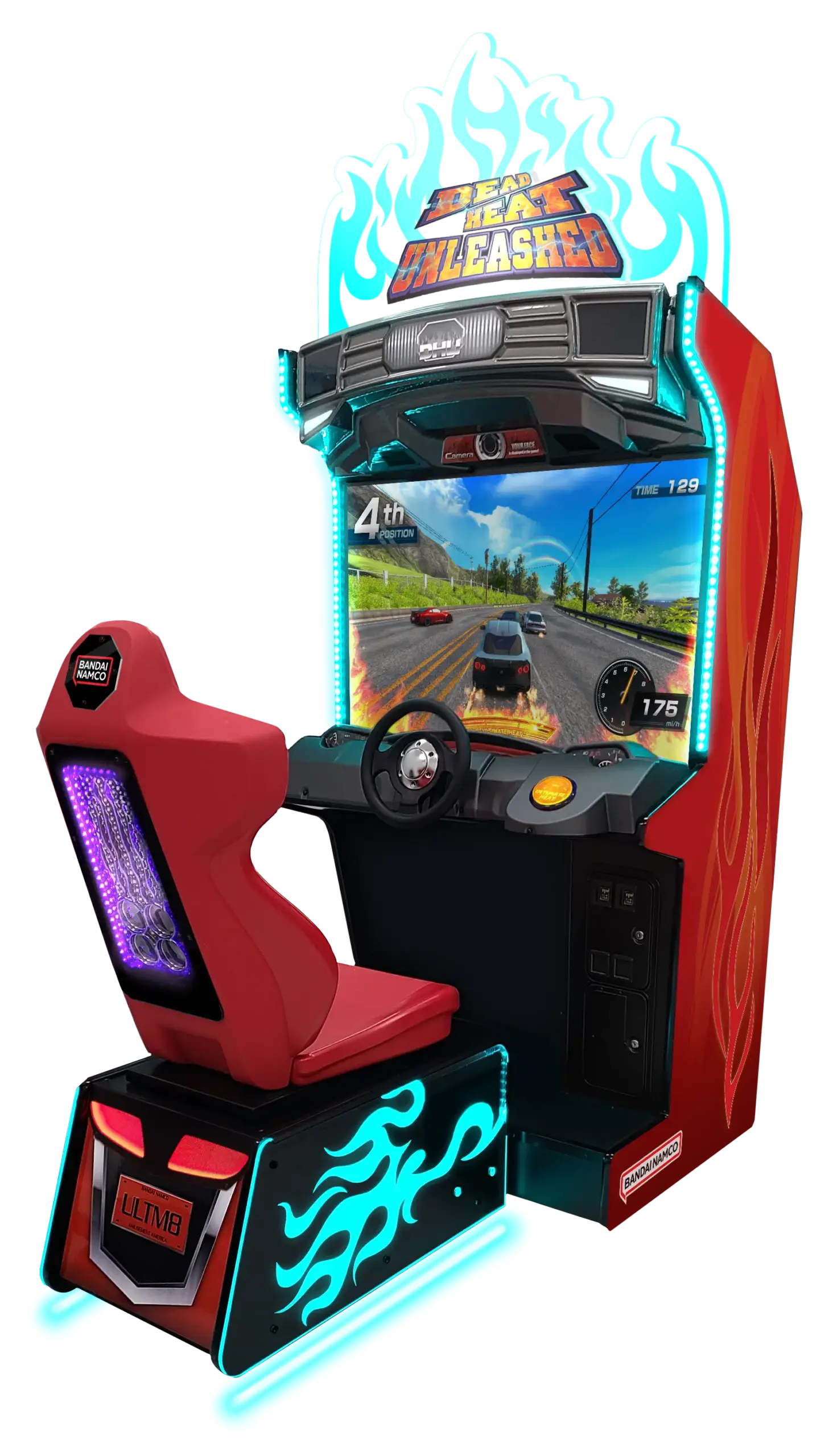 La secuela del exitoso arcade de 2010, Dead Heat Unleashed, es un intenso juego de carreras que llega con cuatro nuevos circuitos, autos renovados y un gabinete con iluminación LED dinámica que reacciona en tiempo real al desarrollo de la carrera, cambiando los patrones de luz durante el juego.