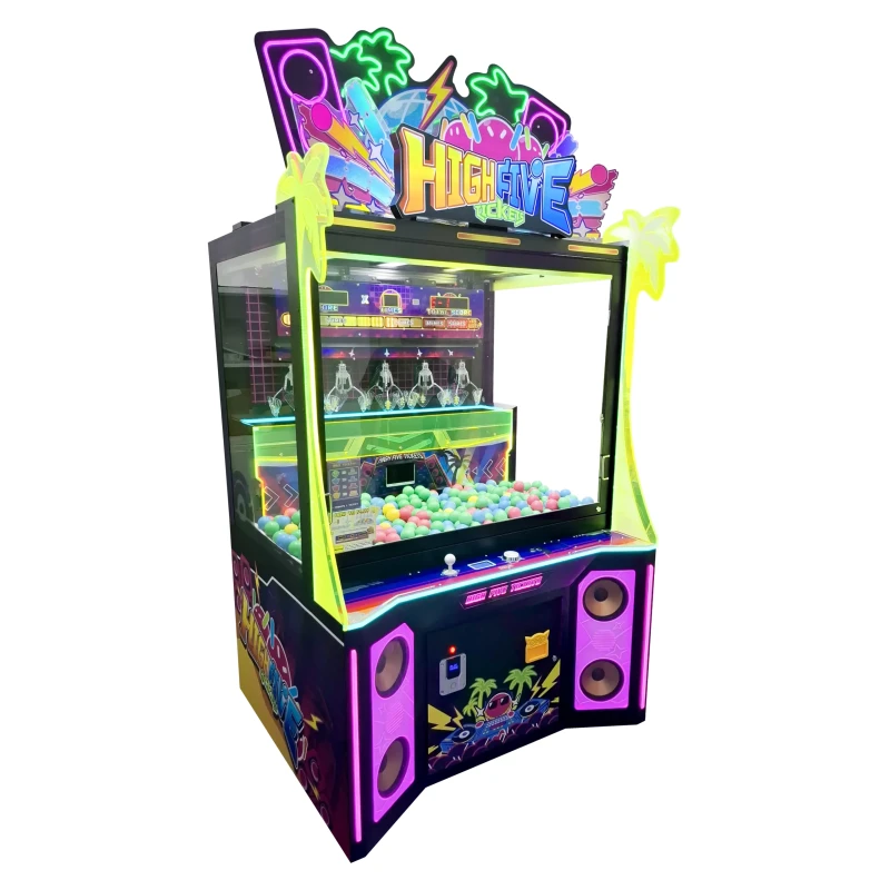 Con una estética inspirada en una fiesta playera neón y una iluminación lateral vibrante, High Five Tickets se convierte en un imán visual que destaca en cualquier ubicación. Pensado también para facilitar la operación, cada pelota ganada se redistribuye automáticamente en el área de juego, manteniendo la acción constante y el funcionamiento del equipo sin interrupciones.